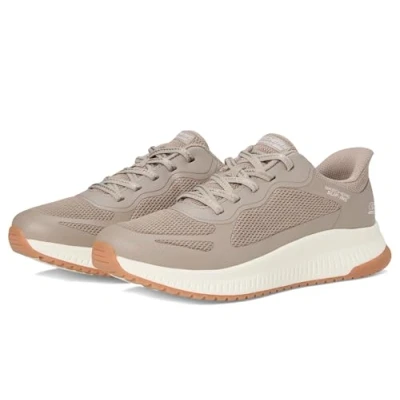 Skechers Womens Hands Free Slip ins Bobs Squad 4 Staple Look, Taupe, 5.5 Wide