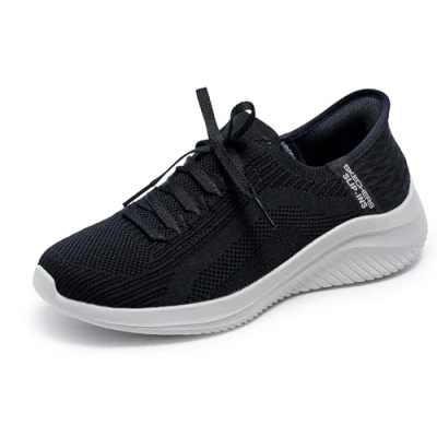 Skechers Women's Ultra Flex 3.0 Brilliant Path Slipper, Black Knit/White Trim, 2 UK