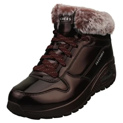 Skechers Women's Uno Rugged Fiesty Winter Ankle Boot, Burgundy Patent Duraleather/Faux Fur, 8 UK