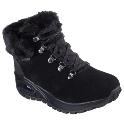 Skechers Women's Uno Rugged Moonlight Ridge Fashion Boot, Black Suede/Duraleather/Faux Fur, 4 UK