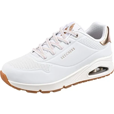 Skechers Women's Uno Shimmer Away Sneaker, White Durabuck Rose Gold Duraleather Trim, 6.5 UK