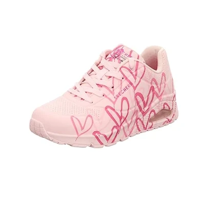 Skechers Women's UNO Spread The Love Sneaker, Pink W Multi Color Heart Print Durabuck Mesh, 4.5 UK