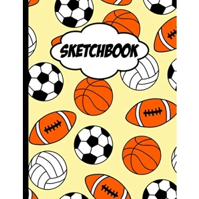 Sketchbook: Practice How To Draw Workbook, 8.5 x 11 Large Blank Pages For Sketching, Classroom Edition Sketchbook Kids, Journal And Sketch Pad Drawing Trendy Football & Basketball Pattern