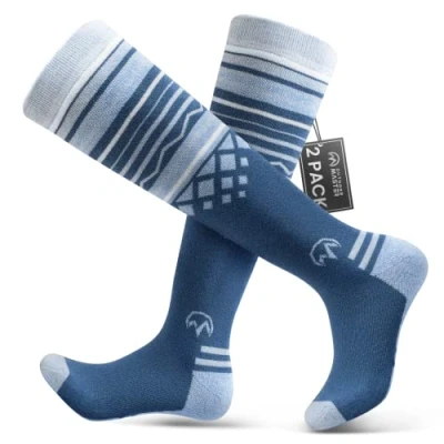Ski Socks 2 Pack Merino Wool, Over The Calf Non Slip Cuff for Men & Women, Baby Blue, Medium
