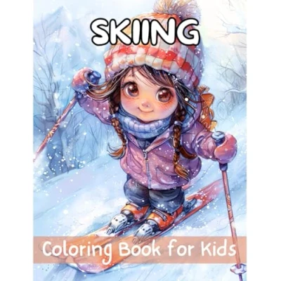 Skiing Coloring Book for Kids: 50 Pages Boys and Girls Relaxation Stress Relief
