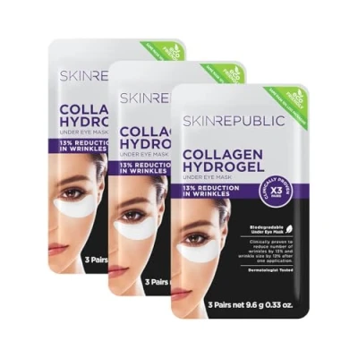 Skin Republic Collagen Eye Patches for Younger Looking Eyes Helps with Fine Lines and Wrinkles Reduces Dark Circles & Undereye Bags Made in Korea Pack of 3 9 Pairs