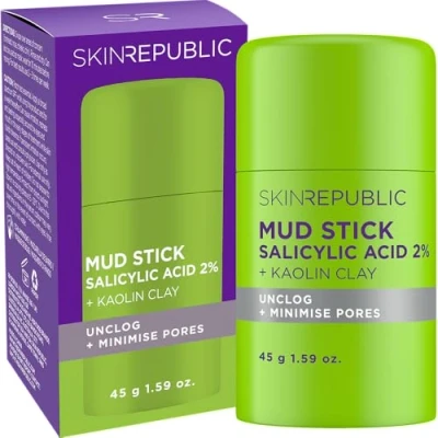 Skin Republic Salicylic Acid 2% + Kaolin Clay Mud Stick Unclogs Pores & Controls Excess Oil Minimises the Appearance of Dermatologist Tested (9g)