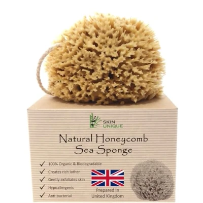 Skin Unique Mediterranean Natural Sea Sponge in Gift Box Unbleached Honeycomb, Strong, Durable 100% Organic, Hypoallergenic Children and Adults Bath, Exfoliating, Cleansing, Pets (Small)