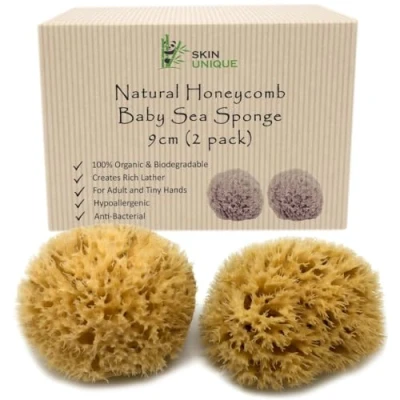 Skin Unique Natural Baby Sponge Unbleached Mediterranean Sea Honeycomb for Babies and Children 100% Natural, Organic, Strong, Durable, Hypoallergenic Bath Cleansing
