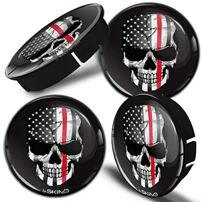 SkinoEu 4 x 60mm 3D Gel Car Wheel Centre Universal Rims Hub Center Caps Vehicle Auto Tuning Emblem Skull USA Red Line Flag C 32