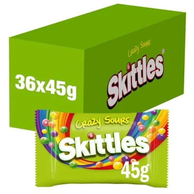 SKITTLES CRAZY SOURS: A 45g individual bag of sour SKITTLES vegan sweets 5 TANGY FLAVOURS: Try sour pineapple, sour raspberry, sour apple, sour mandarin, and sour cherry, and find your favourite TASTE THE RAINBOW: Super sour sweets with crispy outer shells and chewy, sour fruit-flavoured centres THE PERFECT PARTY PLUS ONE: SKITTLES make great party guests, stock up on individual bags and share out with friends and family INDIVIDUAL BAG: Treat yourself to a sweet and tangy sensation with this 45g bag