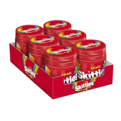 Chewy bite-size sweets that are a bright, colourful explosion of fruity flavours Skittles Fruits sweets include lemon, blackcurrant, strawberry, lime and orange flavours Let's party, ideal to share with friend and familiy during special events such as Halloween, Christmas or Easter Share the rainbow, taste the rainbow with Skittles The upside down rainbow in 7 bottles of 125g