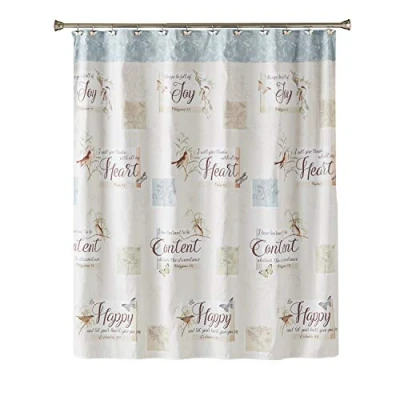 Vibrant digital printed shower curtain Twelve eyelet holes at top for easy hanging Nature vignettes with inspirational sayings and calligraphy details 100% Polyester 70" x 72".Machine wash.Imported.SKL Home brought to you by Saturday Knight Ltd., a leader for 40+ years in the home d cor industry