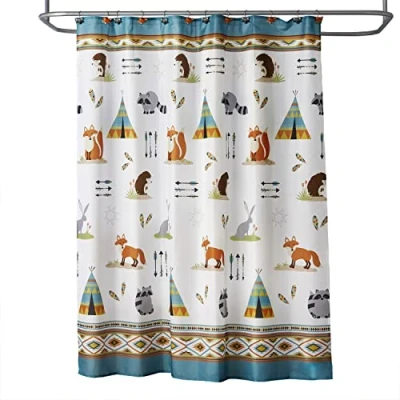 Includes 1 Shower Curtain Lightweight fabric with forest animals, tepees, and a southwestern-themed border 100% Polyester 70" x 72" Machine wash