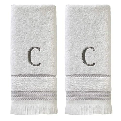 Includes 2 hand towels Soft cotton terry with grey stripes, textured band and self fringe along hem Single embroidered letter in gray 100% Cotton 16" x 26".Machine Wash.Imported.SKL Home brought to you by Saturday Knight Ltd., a leader for 40+ years in the home décor industry.Coordinating Bath Towel available in both Monogram and Plain/Non-Monogram style