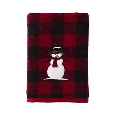 SKL Home Woodland Winter Snowman Bath Towel, Red