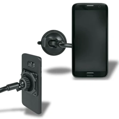 For all smooth surfaces: Whether in the car, in the kitchen or at the workplace: With the COMPIT/FLEXX smartphone holder, which can be fixed to all smooth surfaces, the mobile phone is always within sight. Universal flex arm: The universal system has a flex arm that can be easily bent into the desired position. Suction cup with lever mechanism: The silicone suction cup with vacuum lever mechanism ensures a reliable hold on all smooth surfaces such as tiles, windscreens or glass. Rotating ball joint: The rotating ball joint makes the mobile phone angle-adjustable and can be used horizontally or vertically. This way, you have the smartphone in view and your hands are free. Scope of delivery: SKS GERMANY COMPIT/FLEXX flexible mobile phone holder with flex arm (for all smooth surfaces, universal flex arm, suction cup with lever mechanism, rotating ball joint, bayonet lock)