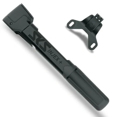 BlacksThe SKS INJEX PLUS bike pump impresses with a wealth of special features.With a 5-degree tilt pump head, making it easier to inflate tyres.Two component handle with a textured surface and ergonomic grip.With an MV EASY head for all valve types and the integrated lever ensures a reliable valve connection.Includes a pump holder to mount it on the frame.The telescopic function ensures more volume per stroke and at the same time increases the maximum achievable pressure.Key Features:Length: 266 mm/telescopicMax. pressure: 10 bar/145 PSIWeight: 219 gAngled pump headOptional telescopic function2-component handle with a textured surfaceMV EASY valve head for all valve typesMade in Germany