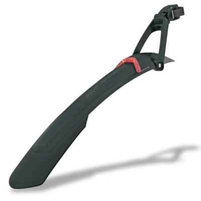Double protection on dark and wet paths: Thanks to the integrated rear light with StVZO approval, the bicycle accessory guarantees cyclists more safety in road traffic. Protection against dirt: The NIGHTBLADE MTB bike mudguard made of impact-resistant high-performance plastic offers optimum splash protection thanks to the front spoiler and the extra-long back spoiler. Bicycle splash guard with highlights: The USB rechargeable reflector with integrated rechargeable battery is removable & the quick-release fastening allows the NIGHTBLADE to be mounted on almost any seat post. The mudguard NIGHTBLADE 29" + 27,5PLUS as well as almost all products from SKS GERMANY are manufactured in Germany and thus offer a convincing proof of quality. Scope of delivery: SKS GERMANY NIGHTBLADE 29" + 27,5PLUS rear wheel mudguard rear light; bike accessories (quick-release attachment, battery charged via USB, length of wheel guard: 620 mm), black