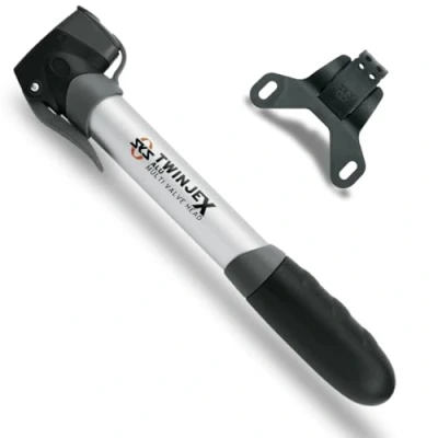 SKS GERMANY TWINJEX ALU mini pump, air pump bicycle, incl. holder (aluminium, valve connection:AV, SV, DV and MULTI VALVE, pressure max.: 10 bar / 144 PSI, telescopic function), black/silver