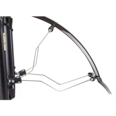 Front mudguard fitting kit for SUNTOUR forks. Includes angled brackets and pre-bent stays for easy mounting on forks outer legs with threaded holes.SECU “pop-out” clip fittings avoid blocking of the wheel when an object gets between tyre and mudguard. Suitable for BLUEMELS, LONGBOARDS and CHROMOPLASTICS.