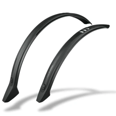 Mudguard set for cool kids: The high-quality mudguards, which are designed for a tyre size of 24", have a width of 55 mm and are therefore ideally suited for a tyre width of 42 - 50 mm. With universal angle fastening: The mudguards can be attached to almost all frame tubes thanks to the practical universal mounting. OPTIONAL underrun bars are also available, which are equipped with an ESC safety system. High-quality materials in an attractive design: Consisting of impact-resistant, black high-performance plastic with integrated SKS logo, the mudguards also visually enhance the bike. Made in Germany: The VELO 55 JUNIOR mudguard set and almost all products from SKS GERMANY are made in Germany and therefore offer a convincing proof of quality. Scope of delivery: SKS GERMANY VELO 55 JUNIOR SET 24'' mudguard set (bicycle mudguard for children's and youth bikes, for tyre width 42 - 50 mm, universal angle attachment, strut attachment optionally available)