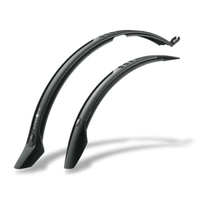 Mudguard set for mountain bikers: The high-quality mudguards, which are designed for a tyre size of 26" - 28", have a width of 65 mm and are therefore ideally suited for a tyre width of 52 - 60 mm. With universal angle fastening: The mudguards can be attached to almost all frame tubes thanks to the practical universal mounting. OPTIONAL underrun bars are also available, which are equipped with an ESC safety system. High-quality materials in an attractive design: Consisting of impact-resistant, black high-performance plastic with integrated SKS logo, the mudguards also visually enhance the bike. Made in Germany: The VELO 65 MOUNTAIN mudguard set and almost all products from SKS GERMANY are manufactured in Germany and therefore offer a convincing proof of quality. Scope of delivery: SKS GERMANY VELO 65 MOUNTAIN SET 26" - 28" mudguard set (bicycle mudguard for mountain bikes, for tyre width 52 - 60 mm, universal angle attachment, strut attachment optionally available)