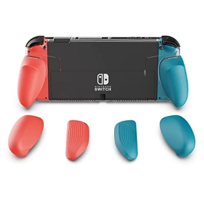 Transparent body: show off your themed Switch OLED. 3 pairs of interchangeable grips to fit all hand sizes and provide players with comfortable handling to avoid carpal tunnel. Dock Friendly: No need to remove the GripCase when docking your SWITCH OLED. The OLED docks' tolerance can differ slightly due to some docks having a slightly shorter USB which may affect the grip's dockable feature. If you have this problem, please contact us any time. SLIDER DESIGN: much easier to switch grips. Made from soft TPU material which provides solid protection, easy to fit and remove., Platforms: Nintendo Switch