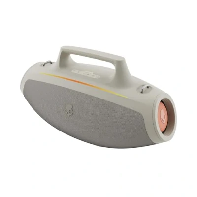 Skullcandy Barrel Wireless Bluetooth Portable Boombox Party Speaker, IPX5 Water Resistant, 12 Hour Battery, True Stereo with LED Light Show and Carrying Strap Bone/Orange