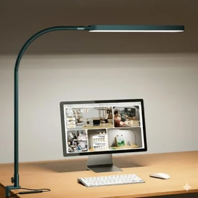 SKYLEO Desk Lamp LED Light Flexible Gooseneck 5 Color Modes X 11 Brightness Levels 1300LM Timmer & Memory Function 12W Clip on Green