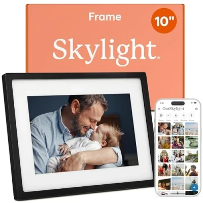 EASY SET-UP: Setting up your Skylight digital frame is a breeze—just plug it in, connect to Wi-Fi, and select a unique Skylight email address. Instantly share photos and videos on the Full HD display from anywhere. It’s truly plug-and-play! CELEBRATE WITH PHOTO GIFTS: Transform any day into a special occasion by sending a unique photo to your loved ones. Perfect for capturing silly moments, vacation adventures, or cherished memories, making it the ultimate photo gift. A BRIDGE FOR EVERY GENERATION: Our digital photo album makes it easy for everyone to stay connected, offering a cherished space for those not on social media and a delightful surprise for the tech-savvy with daily updates of beloved memories through digital picture frames. ELEGANT DESIGN MEETS TECHNOLOGY: Revel in the stunning 10-inch color touch-screen display, boasting a 1280x800 resolution for your electronic picture frame. Enjoy cloud-based storage convenience, eliminating the need for SD cards. THOUGHTFULLY CRAFTED FEATURES: Activate Gift Mode to preload and personalize your digital frame without unboxing, making it a ready-to-enjoy photo gift. Use offline mode to enjoy existing photos without a Wi-Fi connection (a Wi-Fi connection is required to receive or upload new photos).