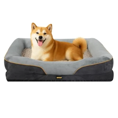 AmazonMemory Foam Dog Bed: Our high-density, solid memory foam provides superior contouring support to relieve pressure on your pet's joints and hips, ideal bed for dogs. Premium Suede Cover: Features a luxuriously soft and durable suede-flannel blend cover that is completely removable and machine washable for ultimate ease of cleaning. Waterproof & Non-Slip: A built-in waterproof liner protects the core foam from accidents. The bottom with non-slip rubber dots keeps the bed firmly in place during use. Secure Bolster Design: The full-circle, padded bolster offers comfortable head and neck support, providing a sense of security for pets who love to curl up or lean. Safety Details: Designed with a concealed zipper for pet safety and aesthetics, and constructed with breathable materials to ensure comfort during extended use.