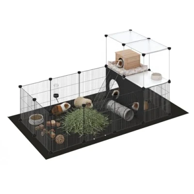 Skylos DIY Pet Playpen, Guinea Pig Cage, Rabbit Run, Small Animal Pen with Door 23 Panels Indoor Modular Puppy Fence, Customizable Cage for Hamster, Bunny, Chinchilla