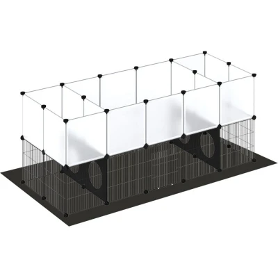 Description Create a safe, flexible and fun space for your pet with this skylos DIY small animal playpen. Designed for rabbits, guinea pigs, puppies, kittens, hedgehogs and other small pets, this pet exercise pen allows you to build a personalised enclosure for play, rest and daily activity. Key Features DIY Modular Design for Endless Layouts: The modular panels allow you to freely create different shapes and layouts to suit your space. Perfect as a small animal cage , play area, training pen or temporary enclosure. Sturdy & Secure Construction: Made from strong metal wire panels combined with durable plastic sheets, this pet playpen offers excellent stability. Reinforced plastic connectors keep the structure firm and reliable. Pet-Safe Mesh Spacing: Featuring an ultra-fine 1.5cm mesh gap , the fence helps prevent pets from getting stuck or escaping, making it ideal for small animals such as rabbits, guinea pigs and hedgehogs. Comfortable Floor Protection: Includes protective mats