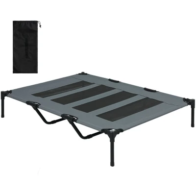 【Strong & Stable Elevated Support】-- This elevated dog bed lifts your pet 20cm off the ground for cleaner, cooler and healthier rest. The stainless steel frame, four legs and dual U-shaped support bars provide heavy-duty stability, making it a reliable raised dog bed for medium and large breeds. 【Durable 600D Oxford Fabric with Breathable Mesh】-- Crafted with high-strength 600D Oxford fabric and ventilated mesh, this cooling dog bed offers excellent durability, tear resistance and airflow. The breathable mesh helps regulate temperature, keeping pets comfortable indoors or as an outdoor dog bed. 【Anti-Slip & Floor-Protective Design】-- Equipped with non-slip plastic feet and a protective shell structure, the bed stays firmly in place on tiles and hardwood floors while preventing scratches. Ideal for indoor use and energetic dogs that jump on and off frequently. 【Easy to Clean & Quick-Drying Surface】-- Hair, dirt and mud do not cling to the tight mesh. Simply rinse with tap water or wipe down with mild soap—no complicated washing needed. Dries quickly, making it perfect for dogs returning from walks, rainy days or outdoor play. 【Tool-Free Assembly & Versatile Use】-- Assemble your raised pet bed within minutes—no tools required. Lightweight yet sturdy, it’s easy to transport for home, garden, camping or travel. The large 121 × 90 cm surface offers ample space, making it an excellent large dog bed for multiple breeds.