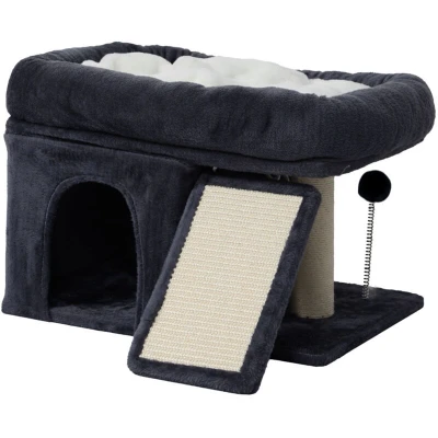 General description Give your cat the luxury and comfort they deserve! Our premium cat tree is expertly crafted to provide an excellent lounging, playing, and scratching experience for cats of all sizes, especially larger breeds. The centerpiece is a large 50cm x 40cm platform, offering more space for your cat to stretch out and relax in complete comfort. The machine-washable cushion makes it easy to keep clean and fresh. This versatile setup is perfect for energetic kittens, active adult cats, and senior cats alike, boasting an impressive 80lbs weight capacity to ensure stability and safety during the most vigorous play. Technical specifications Brand: Skylos Material: Particleboard, sisal rope, plush Type: Scratching post Dimensions: 50 cm x 40 cm x 38 cm (L x W x H) Colour: Dark gray, white Weight Capacity: 80 lbs Compatibility and accessories Package Content: 1x Cat Tree 1x Assembly Kit 1x User Manual Usage Perfect for lounging, playing, and scratching Suitable for cats of all