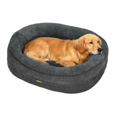【Orthopedic Memory Foam】Features memory foam and egg crate foam for superior pressure relief and joint support, providing optimal support for joints and muscles—perfect for senior dogs or those with arthritis. 【360° Bolstered Design】The overstuffed, full-surround bolsters create a safe and cozy “nest” for dogs who love to curl up or lean. Provides head and neck support from every angle, helping pets feel relaxed and secure. 【Scaled Plush & Durable Surface】Made with ultra-soft fish-scale fabric and a corn-kernel textured outer layer, this bed is soft, durable, and cozy for pets in any season. 【Waterproof & Easy to Clean】Featuring a hidden waterproof lining to protect the foam from spills and accidents, and a fully removable outer cover with a smooth zipper design. Machine-washable for simple maintenance, keeping the bed hygienic and fresh for years of use. 【Anti-Slip Safety Base】Durable non-slip bottom ensures the bed stays firmly in place on hardwood, tile, or other smooth floors. Reduces slips and sliding when your dog jumps on or off, giving both you and your pet peace of mind.
