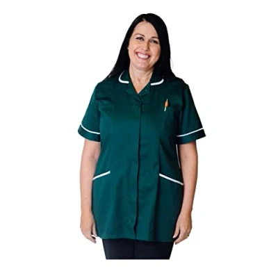 Skywear T66 Healthcare and Beauty Tunics Woman Girls Ladies Tops Office Uniform Shirts, Bottle Green/White, 14