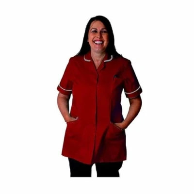 Skywear T66 Healthcare and Beauty Tunics Woman Girls Ladies Tops Office Uniform Shirts, Burgundy with Ivory, 16