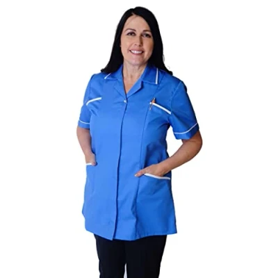Designed for Professionals – Tailored for healthcare, beauty, office, salon, and spa environments. These ladies tunic tops blend functionality with modern style for women on the go Premium Fabric for Comfort – Crafted from 65% polyester and 35% cotton, this breathable, durable tunic top ensures day-long comfort during long shifts. Easy to wash and maintain Elegant & Practical Design – Features a concealed step-in zipper with pearl press stud fastening, pleated back for a flattering fit, and stylish V-cut cuff detailing Functional Pockets – Includes two inset breast pockets lined with PU liquid-repellent fabric and two hip pockets for secure storage of essentials like pens or tools Smart Contrast Finish – Sharp contrast trim on collar, cuffs, and pockets adds a polished, professional look—ideal for nurses, carers, beauticians, and office teams