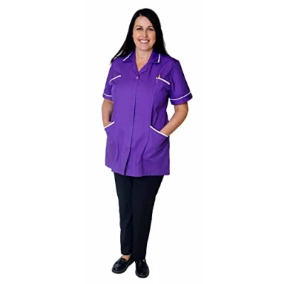 Skywear T70 Healthcare Beauty Tunics Woman Girls Ladies Tops Office Uniform Shirts Top, Purple with White, 22