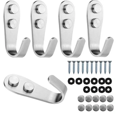 Skyzone 5PCS Coat Hooks Stainless Steel Heavy Duty Wall Mounted Towel Hook J with Screws and Decorative Cover for Kitchen Bathroom Bedroom