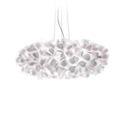 Fascinating Clizia Mama Non Mama hanging light The Clizia Mama Non Mama hanging light conveys pure beauty in terms of appearance and light emission. Like petals, countless elements connected manually by Cristalflex® plug connections form a lampshade that looks like a glowing bouquet and creates an incomparably beautiful lighting atmosphere. A hanging light designed by Adriano Rachele and produced by Italian lighting manufacturer Slamp, founded in 1994 by Roberto Ziliani, which is ideal for atmospheric basic and area lighting in living rooms and bedrooms. Cristalflex® – transparent like crystal, but as light, flexible and break-resistant as polycarbonate – is a material that is ideal for the production of lightweight lighting creations for both private homes and hotels. A petal print is depicted on the transparent technopolymer material. Adriano Rachele, the creative mind behind the design of Clizia, has been working in the Research & Development department since 2007, where he is dedicated to creating special lighting objects that, according to his ambition, radiate poetry and emotion. Slamp's lights are characterised not least by the special lighting effect created by the materials developed specifically for this purpose. Slamp's exclusive magnetic system makes it quick and easy to assemble any light.