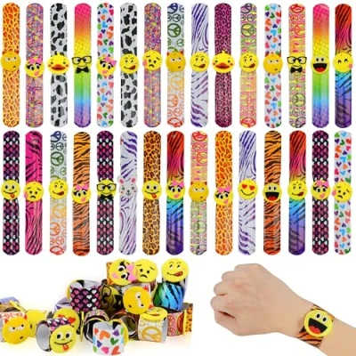 The kids bracelet for girls & boys are made with durable metal cores on the inside & tightly wrapped with soft pvc material on the outside, making them safe, soft & comfortable to wear, & not easily broken or faded party favors bulk bracelets.Slap bracelets bulk for kids will make every day more enjoyable for childrens. Our slap bands bulk prizes for kids are a perfect gift for friends, family & kids.This bracelets set that can be worn on any occasion, whether it's a casual day out or a special event such as school parties, birthday parties, kids stocking stuffers etc. Slap bracelet bulk is a perfect choice for anyone who wants to add some fun & style to their accessories collection. Perfect size for kids and adults, you simply slap the bracelets on your wrist and it will form a comfortable circle according to the size of your wrist. It won't break or scratch your skin, it's lightweight and comfortable, so you can wear it for a long time. These class prizes for students bulk bracelets are lightweight & compact, so they won't take up too much room in your pocket, purse, or backpack.You can wear this bracelet band for kids anytime, anywhere, whether you're going to school, work, or out with friends.Give your child this toddler party favors bulk toys for kids prizes to brighten his day. Contains 32 Pcs of Slap Bracelets wristbands with random different style and pattern.A variety of styles to choose from, perfect for a variety of party themes or just everyday wear., Manufacturer: Nunki Toy