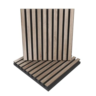 APPLICATION: These HDF acoustic panels, with sound-absorbing materials, excel in midrange and high-frequency sound reproduction. Typically wall or ceiling mounted, they're used in recording studios, home entertainment areas, music studios, corporate spaces, practice rooms, performance venues, conference areas, dining spots, hotels, residences, religious spaces, recreational venues, and broadcasting studios. ACOUSTIC IMPROVEMENT: Enhance room acoustics using our premium acoustic wooden wall panels. Offering superior sound control, they effectively absorb sound and reduce echo in any setting. Unlike traditional foam panels, our wooden acoustic solutions deliver notably improved performance. Choose from a range of unique designs and colours to complement your interior perfectly. SPECIFICATIONS: Combination of absorption and diffusion | Absorption is aimed at medium frequencies | Overall noise reduction coefficient (NRC): 0.65 | Dissipation range: 200 Hz to 5000 Hz | Material composition: Laminated high density fibreboard (HDF) and acoustic foam | Dimensions: 500x500x53 mm / (19.7x19.7x2.1 inches) | Sold in sets of 2. MOUNTING OPTIONS: Fixing with double-sided adhesive tape (included) in the vertical plane. To install the panels on the ceiling, it is recommended to use construction adhesive (so-called liquid nails). CUSTOMER SUPPORT: Our team is committed to providing a positive experience with every order. If you encounter any issues with your product, you can reach out through your Amazon account — we're always ready to assist.
