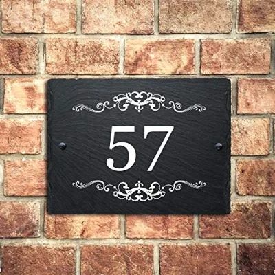 Rich in natural markings and character, all signs are pre drilled with countersunk holes UV printed for a distinctive and clean text finish, easy to wipe clean and maintain Slate thickness: 4-6mm Please Customize : Fonts and Message - Any Number combination e.g. Door Number. If you don't specify, we'll print Default Font 01 Our slate house signs are hand cut to leave a nice rustic edge and engraved using the UV print techniques to ensure a clean and crisp finish