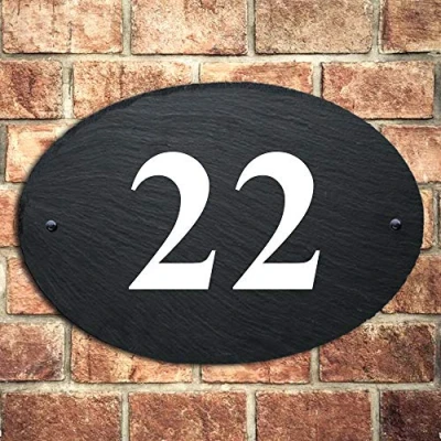 Slate House Signs Personalised Door Number Plaques For Wall Outside UV Printed Natural Rustic Choice of 5 Sizes 6 Fonts Ideal Home, Office, Gate, Porch(27x19cm Oval Number)