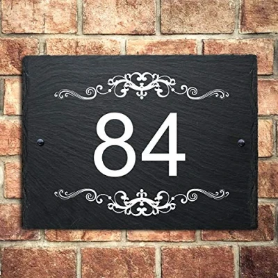Rich in natural markings and character, all signs are pre drilled with countersunk holes UV printed for a distinctive and clean text finish, easy to wipe clean and maintain Slate thickness: 4-6mm Please Customize : Fonts and Message - Any Number combination e.g. Door Number. If you don't specify, we'll print Default Font 01 Our slate house signs are hand cut to leave a nice rustic edge and engraved using the UV print techniques to ensure a clean and crisp finish