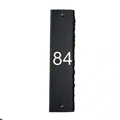 Rich in natural markings and character, all signs are pre drilled with countersunk holes UV printed for a distinctive and clean text finish, easy to wipe clean and maintain Slate thickness: 4-6mm Please Customize : Fonts and Message - Any Number combination e.g. Door Number. If you don't specify, we'll print Default Font 01 Our slate house signs are hand cut to leave a nice rustic edge and engraved using the UV print techniques to ensure a clean and crisp finish