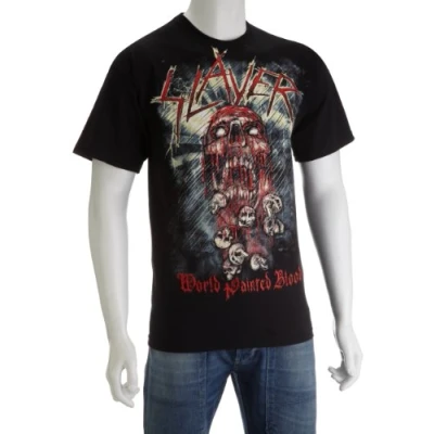 Slayer Men World Painted Blood Skull Short Sleeve T Shirt, Black, Small